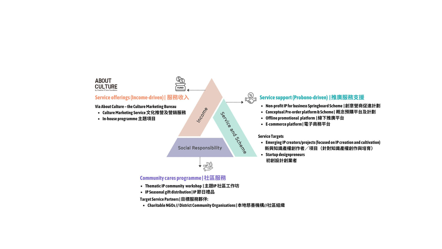 - 通過文化仲入推廣服務(About Culture Marketing)提供整合營銷方案與傳訊,助力本地創意文化項目的推廣工作與商業轉化。