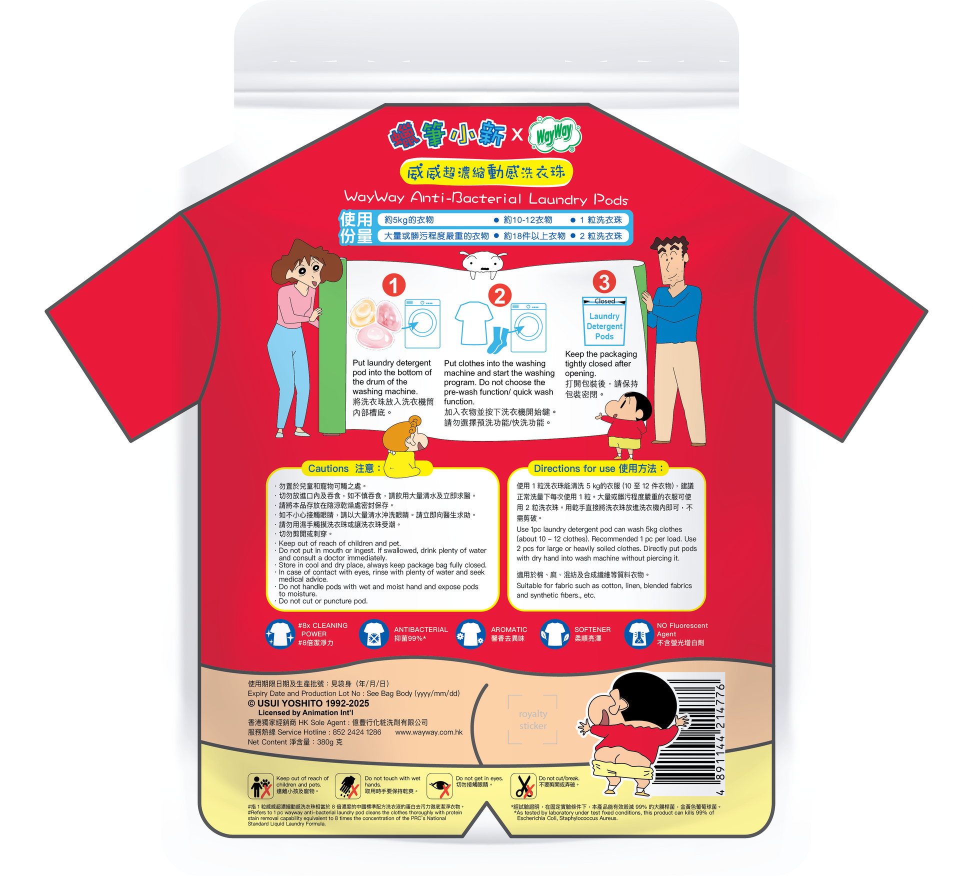 蠟筆小新動感洗衣珠 38粒 (紅衫版)